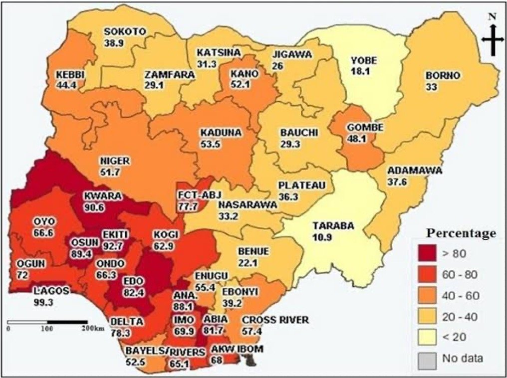 Nigeria is challenged with low availability of electricity in rural areas as shown in the Map. And unreliability in the urban centers.